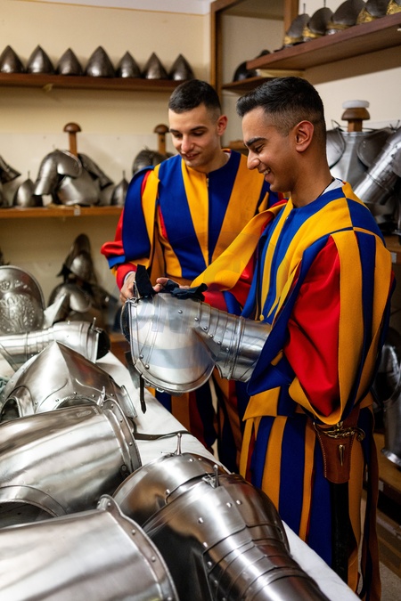 Pontifical Swiss Guards prepare ahead of their swearing-in ceremony in Vatican City, Vatican, on 04 October 2025., Credit:Stefano Costantino TTL / Avalon