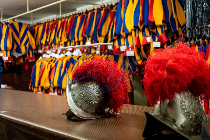 Pontifical Swiss Guards prepare ahead of their swearing-in ceremony in Vatican City, Vatican, on 04 October 2025., Credit:Stefano Costantino TTL / Avalon