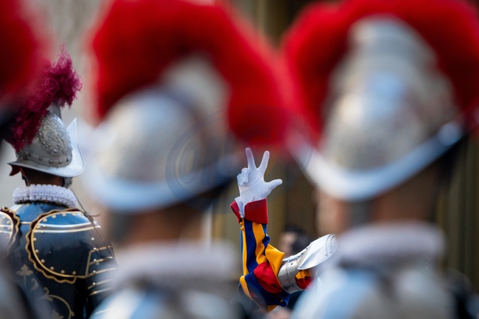 27 cadets of the Pontifical Swiss Guard pronounce the swearing-in oath in the St. Damasus Courtyard in Vatican City, Vatican, on 04 October 2025.