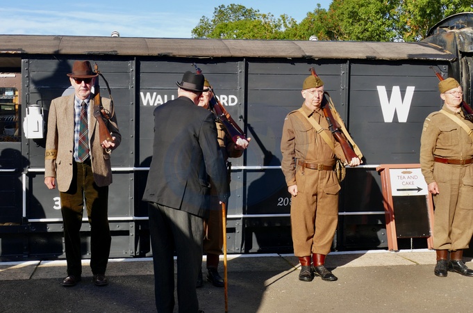 Winston Churchill inspects the Home Guard at Wallingford Station. The popular 1940's event returned to the Bunkline this weekend at The Cholsey & Wallingford Railway. Visitors could experience the 1940s and the Second World War with authentic re-enactors, Home Guard, Allied Forces, Special Operations and Home Front displays along with 1940s singers and vintage vehicles., Credit:Geoffrey Swaine / Avalon
