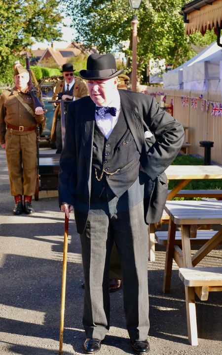 Winston Churchill inspects the Home Guard at Wallingford Station. The popular 1940's event returned to the Bunkline this weekend at The Cholsey & Wallingford Railway. Visitors could experience the 1940s and the Second World War with authentic re-enactors, Home Guard, Allied Forces, Special Operations and Home Front displays along with 1940s singers and vintage vehicles., Credit:Geoffrey Swaine / Avalon