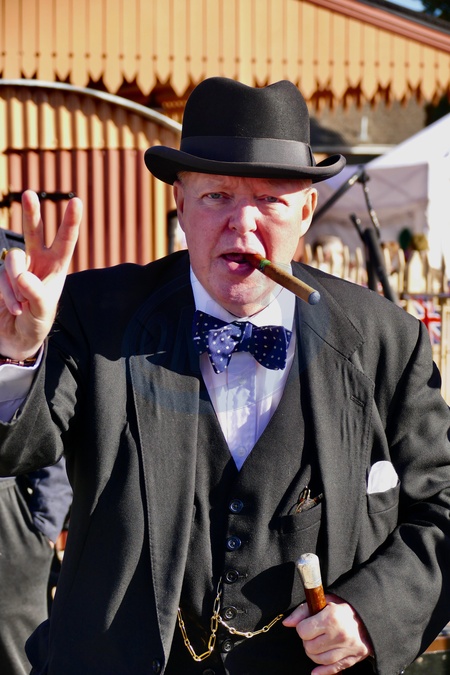 Winston Churchill inspects the Home Guard at Wallingford Station. The popular 1940's event returned to the Bunkline this weekend at The Cholsey & Wallingford Railway. Visitors could experience the 1940s and the Second World War with authentic re-enactors, Home Guard, Allied Forces, Special Operations and Home Front displays along with 1940s singers and vintage vehicles., Credit:Geoffrey Swaine / Avalon