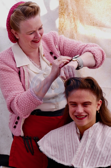 A woman has her hair pinned ip in the 40's style. The popular 1940's event returned to the Bunkline this weekend at The Cholsey & Wallingford Railway. Visitors could experience the 1940s and the Second World War with authentic re-enactors, Home Guard, Allied Forces, Special Operations and Home Front displays along with 1940s singers and vintage vehicles., Credit:Geoffrey Swaine / Avalon