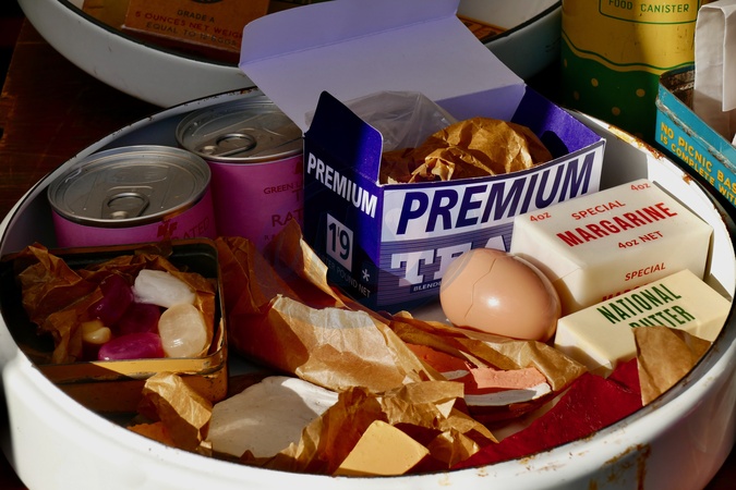 Rations on display. The popular 1940's event returned to the Bunkline this weekend at The Cholsey & Wallingford Railway. Visitors could experience the 1940s and the Second World War with authentic re-enactors, Home Guard, Allied Forces, Special Operations and Home Front displays along with 1940s singers and vintage vehicles., Credit:Geoffrey Swaine / Avalon