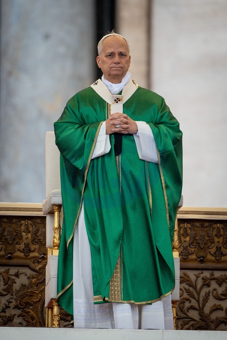 Pope Leo XIV celebrates a mass for the Jubilee of the Missionary World and Migrants in St. Peter's Square in Vatican City, Vatican, on 05 October 2025.