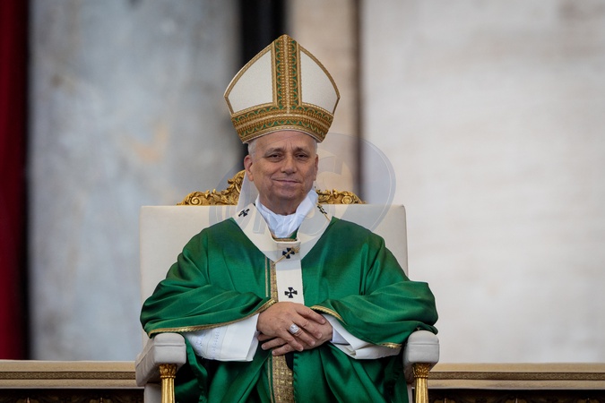 Pope Leo XIV celebrates a mass for the Jubilee of the Missionary World and Migrants in St. Peter's Square in Vatican City, Vatican, on 05 October 2025., Credit:Stefano Costantino TTL / Avalon