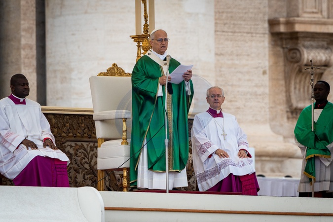 Pope Leo XIV celebrates a mass for the Jubilee of the Missionary World and Migrants in St. Peter's Square in Vatican City, Vatican, on 05 October 2025., Credit:Stefano Costantino TTL / Avalon