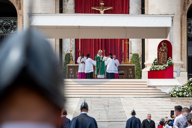 Pope Leo XIV celebrates a mass for the Jubilee of the Missionary World and Migrants in St. Peter's Square in Vatican City, Vatican, on 05 October 2025.