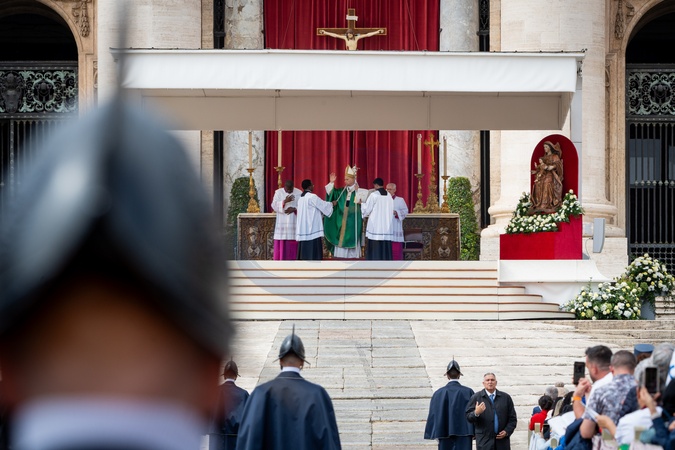 Pope Leo XIV celebrates a mass for the Jubilee of the Missionary World and Migrants in St. Peter's Square in Vatican City, Vatican, on 05 October 2025.