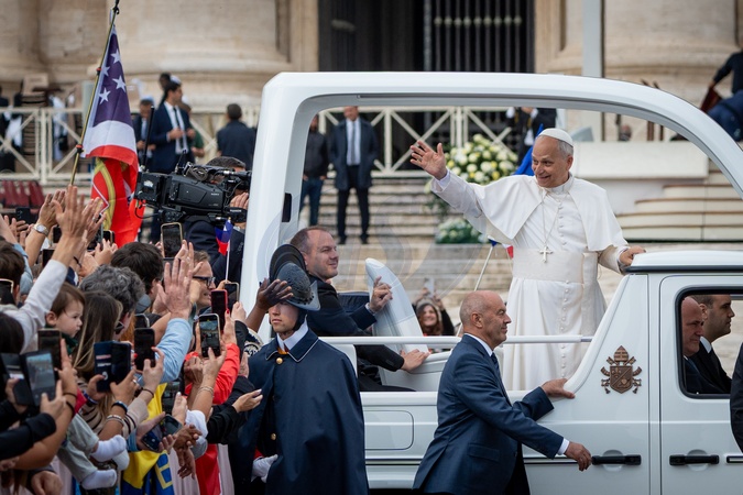 Pope Leo XIV celebrates a mass for the Jubilee of the Missionary World and Migrants in St. Peter's Square in Vatican City, Vatican, on 05 October 2025., Credit:Stefano Costantino TTL / Avalon