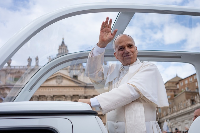 Pope Leo XIV celebrates a mass for the Jubilee of the Missionary World and Migrants in St. Peter's Square in Vatican City, Vatican, on 05 October 2025.
