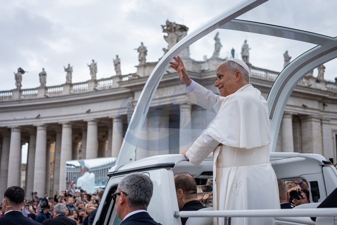 Pope Leo XIV celebrates a mass for the Jubilee of the Missionary World and Migrants in St. Peter's Square in Vatican City, Vatican, on 05 October 2025.