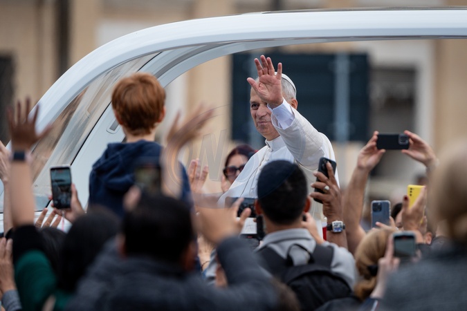 Pope Leo XIV celebrates a mass for the Jubilee of the Missionary World and Migrants in St. Peter's Square in Vatican City, Vatican, on 05 October 2025.