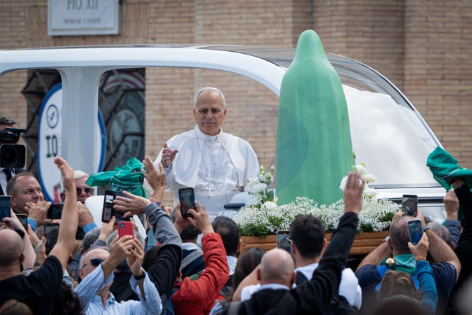 Pope Leo XIV celebrates a mass for the Jubilee of the Missionary World and Migrants in St. Peter's Square in Vatican City, Vatican, on 05 October 2025., Credit:Stefano Costantino TTL / Avalon
