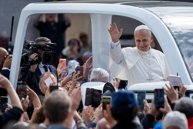 Pope Leo XIV celebrates a mass for the Jubilee of the Missionary World and Migrants in St. Peter's Square in Vatican City, Vatican, on 05 October 2025., Credit:Stefano Costantino TTL / Avalon