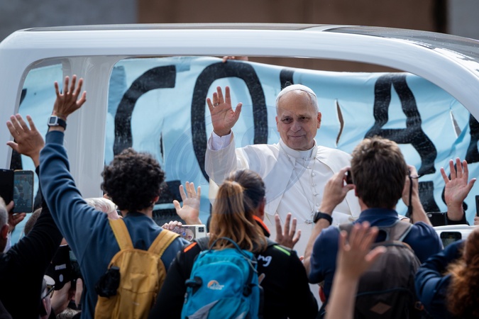 Pope Leo XIV celebrates a mass for the Jubilee of the Missionary World and Migrants in St. Peter's Square in Vatican City, Vatican, on 05 October 2025.