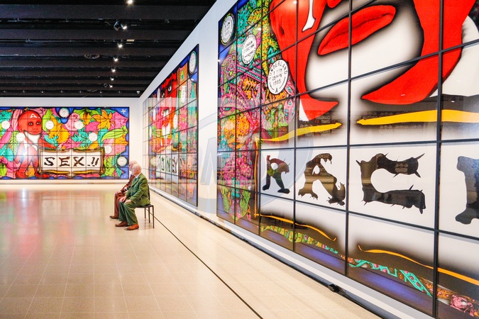 Gilbert & George '21ST CENTURY PICTURES' photocall at the Hayward Gallery, London, UK