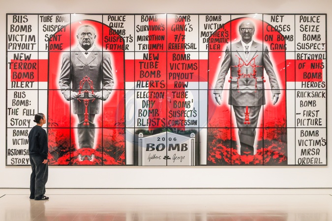 Gilbert & George '21ST CENTURY PICTURES' photocall at the Hayward Gallery, London, UK