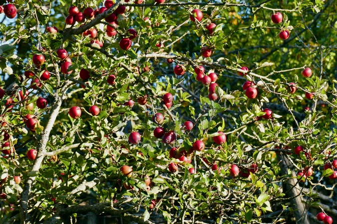 A large variety of apples in a community orchard in an Oxfordshire village. The summers hot weather has sparked a bumper apple crop this year. There has been an abundance of apples and the droughts caused a lower liquid content in some crops which has resulted in apples with a higher sugar content. This is a good sign for cider makers., Credit:Geoffrey Swaine / Avalon