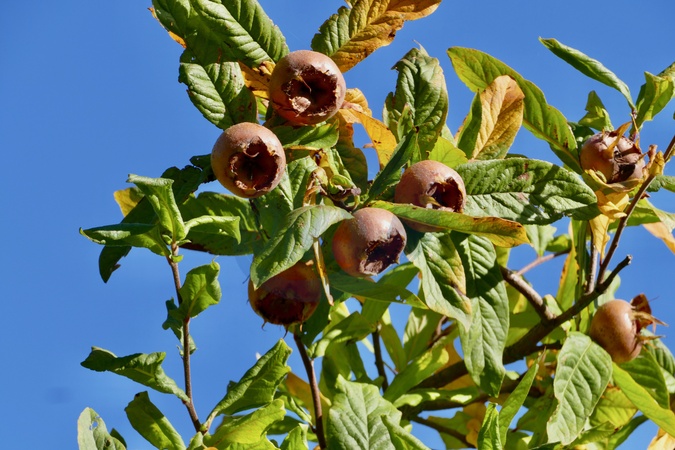 The unusual medlar fruits. If you're unfamiliar with medlar fruit, that's not surprising. This unusual pome was popular in Medieval times, but fell out of favour as produce preferences turned towards convenience for our fast-paced lives. The medlar's small, roundish fruit can be described as a cross between apples and rose hips; but like its other cousin the quince, it is inedible fresh off the tree. Medlar fruits require a special ripening process called "bletting” before they can be enjoyed., Credit:Geoffrey Swaine / Avalon
