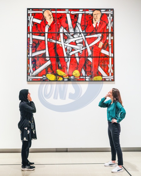 Gilbert & George '21ST CENTURY PICTURES' photocall at the Hayward Gallery, London, UK