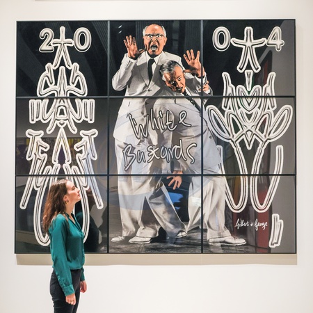 Gilbert & George '21ST CENTURY PICTURES' photocall at the Hayward Gallery, London, UK