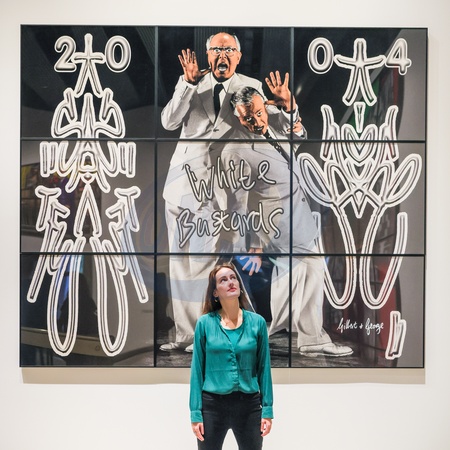 Gilbert & George '21ST CENTURY PICTURES' photocall at the Hayward Gallery, London, UK