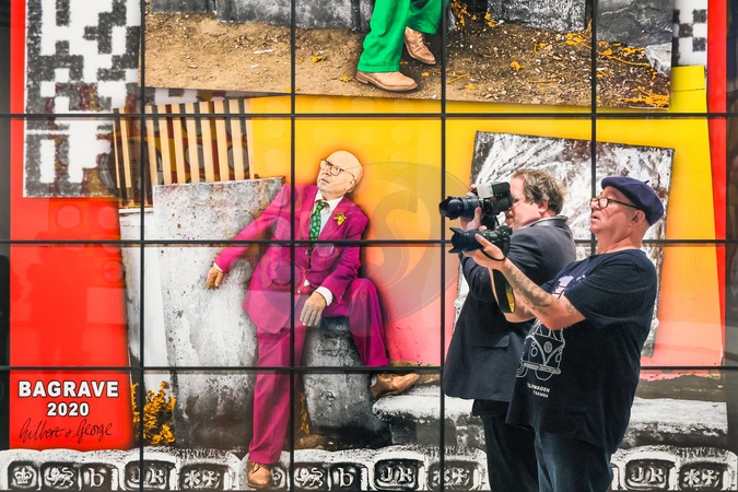 Gilbert & George '21ST CENTURY PICTURES' photocall at the Hayward Gallery, London, UK