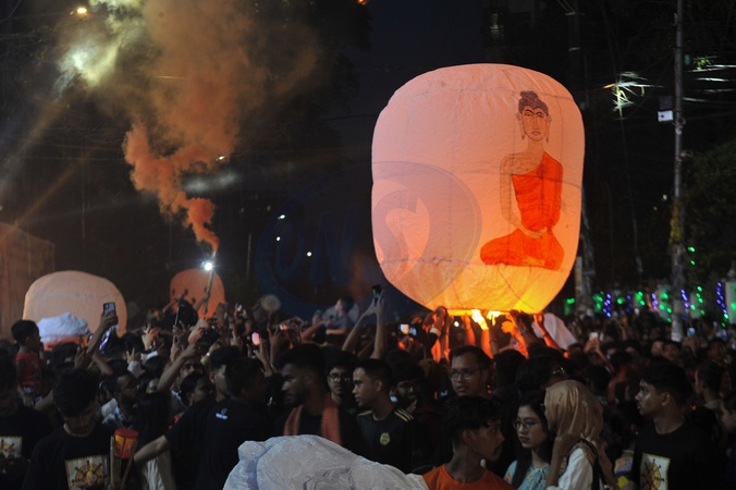CHATTOGRAM, Bangladesh: Buddhists release colorful paper lanterns into the evening sky in the city's Nandankanon area to celebrate Probarona Purnima, the second-largest festival of the Buddhist community. The festival is being observed across the port city and its surrounding upazilas with traditional enthusiasm and spiritual solemnity., Credit:Md Rafayat Haque Khan / Avalon