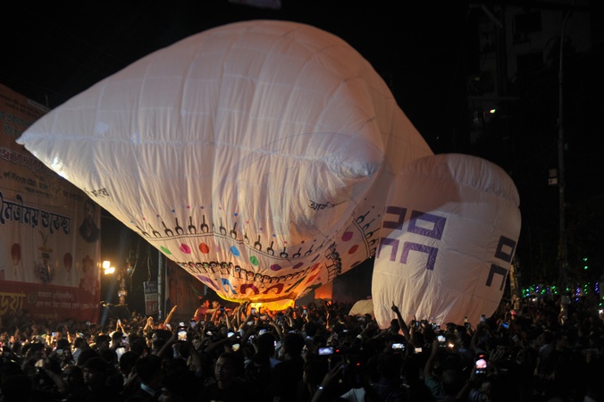 CHATTOGRAM, Bangladesh: Buddhists release colorful paper lanterns into the evening sky in the city's Nandankanon area to celebrate Probarona Purnima, the second-largest festival of the Buddhist community. The festival is being observed across the port city and its surrounding upazilas with traditional enthusiasm and spiritual solemnity., Credit:Md Rafayat Haque Khan / Avalon