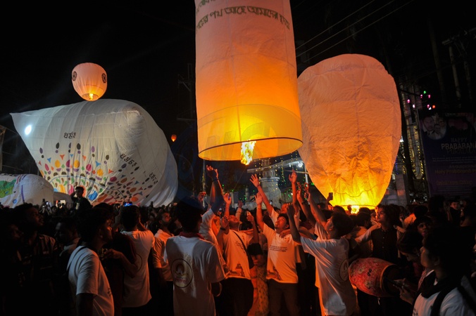 CHATTOGRAM, Bangladesh: Buddhists release colorful paper lanterns into the evening sky in the city's Nandankanon area to celebrate Probarona Purnima, the second-largest festival of the Buddhist community. The festival is being observed across the port city and its surrounding upazilas with traditional enthusiasm and spiritual solemnity., Credit:Md Rafayat Haque Khan / Avalon