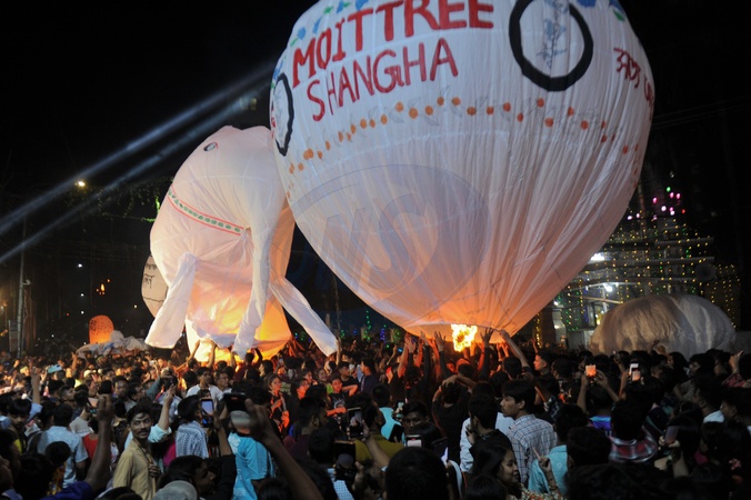 CHATTOGRAM, Bangladesh: Buddhists release colorful paper lanterns into the evening sky in the city's Nandankanon area to celebrate Probarona Purnima, the second-largest festival of the Buddhist community. The festival is being observed across the port city and its surrounding upazilas with traditional enthusiasm and spiritual solemnity., Credit:Md Rafayat Haque Khan / Avalon
