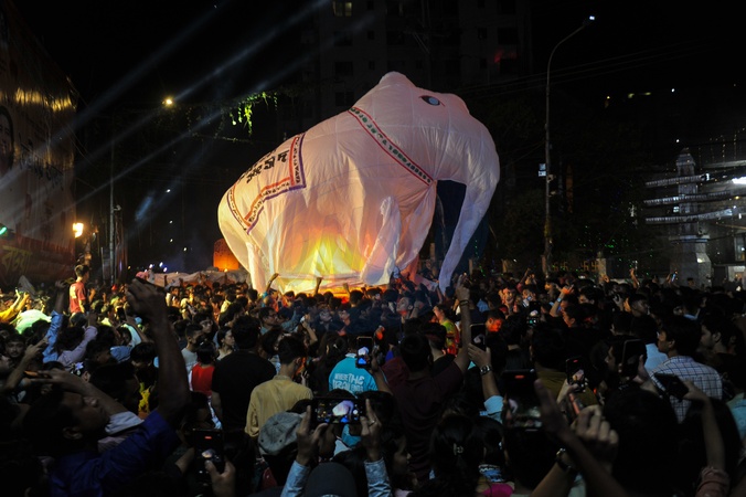 CHATTOGRAM, Bangladesh: Buddhists release colorful paper lanterns into the evening sky in the city's Nandankanon area to celebrate Probarona Purnima, the second-largest festival of the Buddhist community. The festival is being observed across the port city and its surrounding upazilas with traditional enthusiasm and spiritual solemnity., Credit:Md Rafayat Haque Khan / Avalon