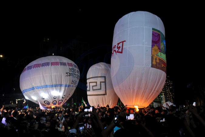 CHATTOGRAM, Bangladesh: Buddhists release colorful paper lanterns into the evening sky in the city's Nandankanon area to celebrate Probarona Purnima, the second-largest festival of the Buddhist community. The festival is being observed across the port city and its surrounding upazilas with traditional enthusiasm and spiritual solemnity., Credit:Md Rafayat Haque Khan / Avalon