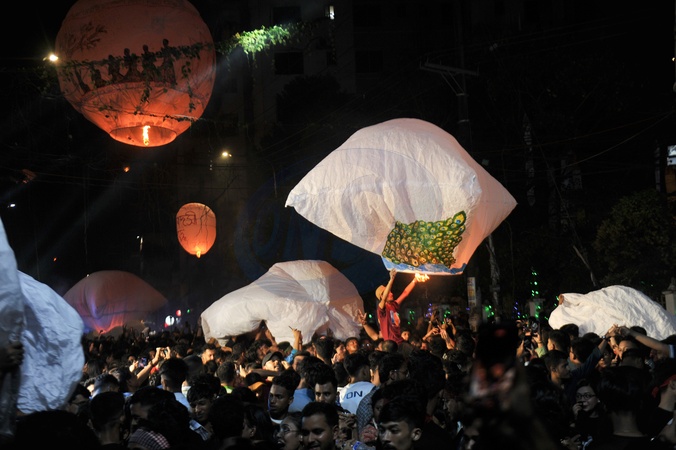 CHATTOGRAM, Bangladesh: Buddhists release colorful paper lanterns into the evening sky in the city's Nandankanon area to celebrate Probarona Purnima, the second-largest festival of the Buddhist community. The festival is being observed across the port city and its surrounding upazilas with traditional enthusiasm and spiritual solemnity., Credit:Md Rafayat Haque Khan / Avalon