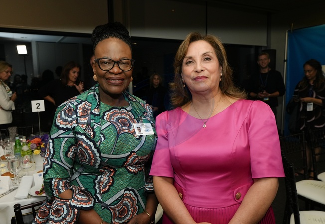 L-R: Hon. Selma Ashipala-Musavyi, Namibia Minister of International Relations and Trade, H.E.Mrs. Dina Boluarte Zegarra President Peru during the Annual Meeting of the UNGA Platform of Women Leaders – Working Dinner in the UNHQ Delegates Dining Room, in New York City, Monday, September 22, 2025., Credit:Jennifer Graylock-Graylock.com / Avalon