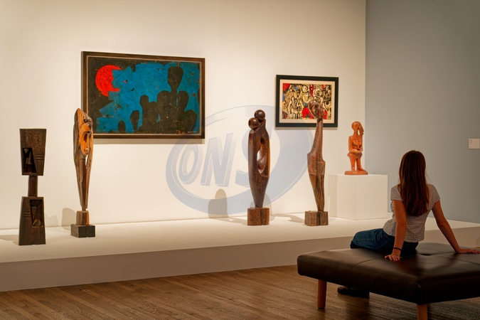 The Nigerian Modernism show at the Tate Modern celebrates the achievements of Nigerian artists working before and after the decade of national independence from British colonial rule in 1960. Nigerian Modernism displays artistic networks which spanned Zaria, Ibadan, Lagos and Enugu, as well as London, Munich and Paris. Displayed are a diverse range of paintings, sculpture, textiles and poetry, many of which have never been seen in the UK before., Credit:Aldo Ciarrocchi / Avalon