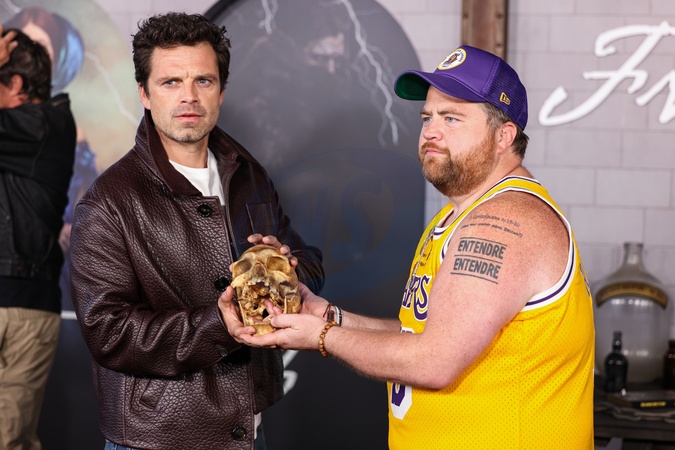 MIRACLE MILE, LOS ANGELES, CALIFORNIA, USA - OCTOBER 06: Romanian-American actor Sebastian Stan and American actor, comedian, and professional wrestler Paul Walter Hauser arrive at the Los Angeles Premiere Of Netflix's 'Frankenstein' held at the Academy Museum of Motion Pictures on October 6, 2025 in Miracle Mile, Los Angeles, California, United States., Credit:Xavier Collin / Avalon