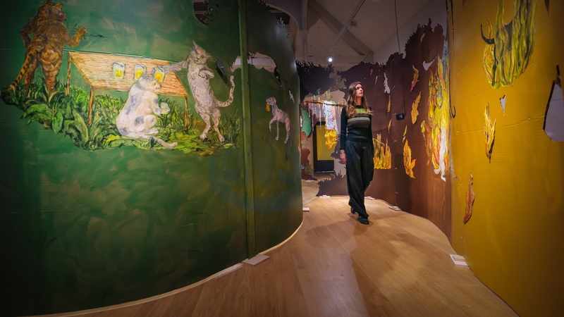 London, UK. 07th Oct 2025. Whitechapel Gallery presents a new commission from artist Candice Lin, featuring an absorbing and disorientating labyrinth. Visitors to 'g/hosti' are plunged into a circular labyrinth made from curved, painted panels that depict a fantastical world populated by animals and other creatures. On display until 1st Mar 2026., Credit:Imageplotter / Avalon
