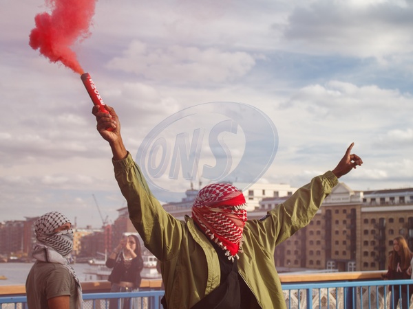 Protesters from Youth Demand and other Palestine groups block Tower Bridge, London, UK, 7 October 2025, Credit:Alex Day / Avalon