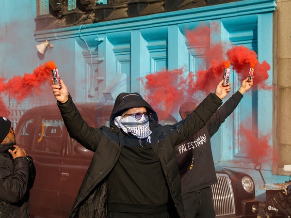 Protesters from Youth Demand and other Palestine groups block Tower Bridge, London, UK, 7 October 2025, Credit:Alex Day / Avalon