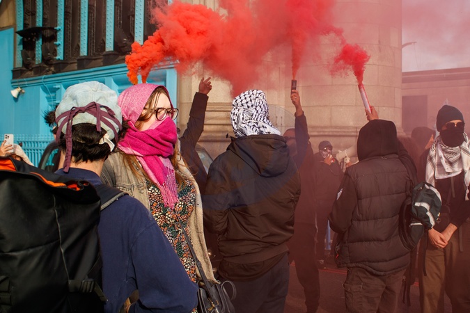 Protesters from Youth Demand and other Palestine groups block Tower Bridge, London, UK, 7 October 2025, Credit:Alex Day / Avalon