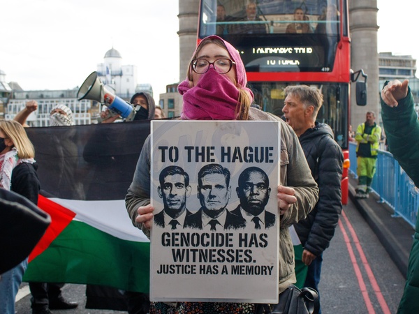 Protesters from Youth Demand and other Palestine groups block Tower Bridge, London, UK, 7 October 2025, Credit:Alex Day / Avalon