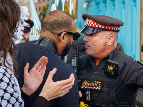 Protesters from Youth Demand and other Palestine groups block Tower Bridge, London, UK, 7 October 2025, Credit:Alex Day / Avalon