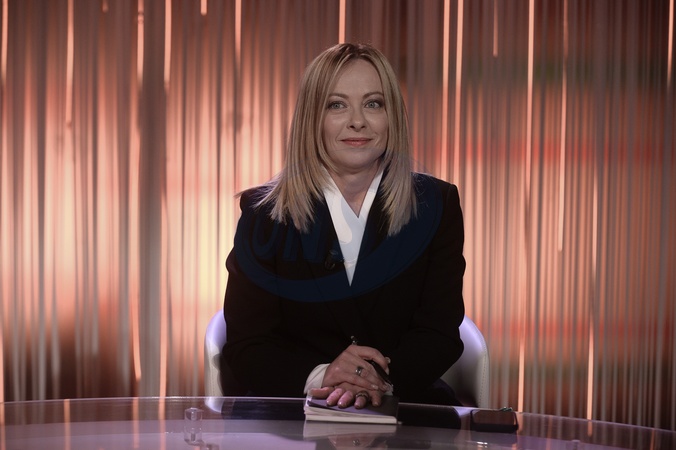 Giorgia Meloni bierze udział w programie telewizyjnym „Porta a Porta”