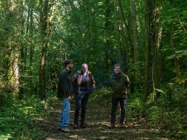 (L to R) Director Ronan Day-Lewis with actors Daniel Day-Lewis and Sean Bean during the production of "Anemone" (2025), Credit:Maria Lax / Focus Features / Avalon