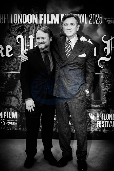 Rian Johnson and Daniel Craig attends the Opening Night of the BFI London Film Festival; the UK premiere of WAKE UP DEAD MAN: A KNIVES OUT STORY on Wednesday 8 October 2025 at Royal Festival Hall, London. Editors Note: Image converted to monochrome., Credit:Julie Edwards / Avalon