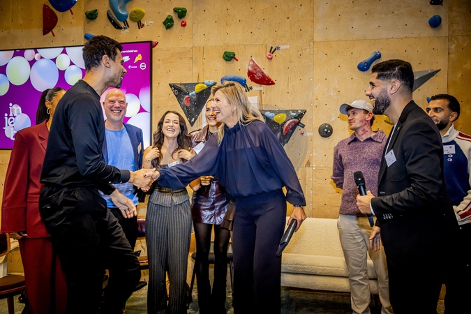 UTRECHT, The Netherlands, 2025-10-08 15:41:31UTRECHT, October 8, 2025. Queen Máxima, honorary chair of the MIND Us foundation, is launching the digital platform "In je bol" (In Your Bol) in Utrecht, featuring Afrojack and others. State Secretary Tielen of Health, Welfare and Sport is also present at the launch. PHOTO: NLBeeld/Patrick van Emst, Credit:Avalon