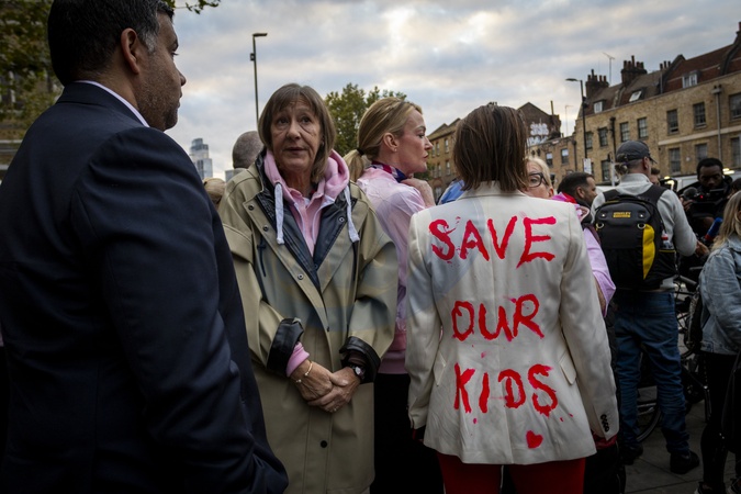 A protest organised by the right-wing group known as the ‘Pink Ladies' took place outside Tower Hamlets Town Hall in East London. The demonstration was met by counter-protesters opposing their message, leading to tense exchanges between both sides. Police maintained a visible presence to keep the groups apart as crowds gathered outside the Town Hall., Credit:Zak Irfan / Avalon