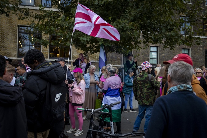 A protest organised by the right-wing group known as the ‘Pink Ladies' took place outside Tower Hamlets Town Hall in East London. The demonstration was met by counter-protesters opposing their message, leading to tense exchanges between both sides. Police maintained a visible presence to keep the groups apart as crowds gathered outside the Town Hall., Credit:Zak Irfan / Avalon